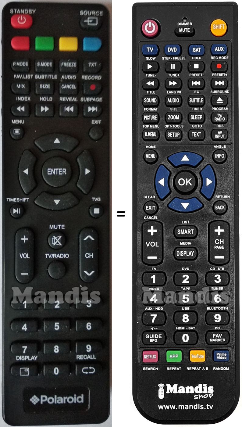 Below, we will show you the correspondence between each button on the original remote control and the button that performs the same function on the replacement remote control. In some cases, you may need to press the SHIFT key before pressing another button to perform certain actions. These additional functions are often not widely used and are included to facilitate understanding of the replacement remote control, or because the original remote control has more buttons than its equivalent.