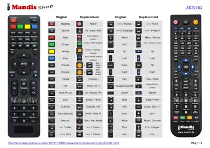 A document is included to help you use the new remote control easily, showing the button correspondence.
