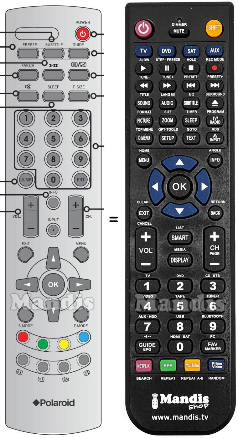 This remote control fully replaces your Polaroid001 and offers all the functions of the original.