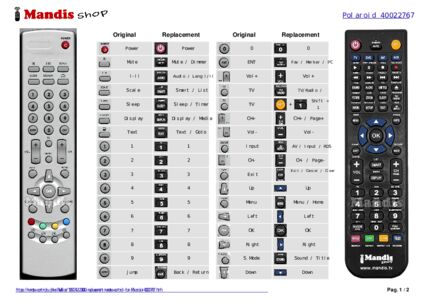 A document is included to help you use the new remote control easily, showing the button correspondence.