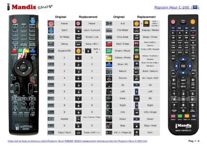 Below, we will show you the correspondence between each button on the original remote control and the button that performs the same function on the replacement remote control. In some cases, you may need to press the SHIFT key before pressing another button to perform certain actions. These additional functions are often not widely used and are included to facilitate understanding of the replacement remote control, or because the original remote control has more buttons than its equivalent.