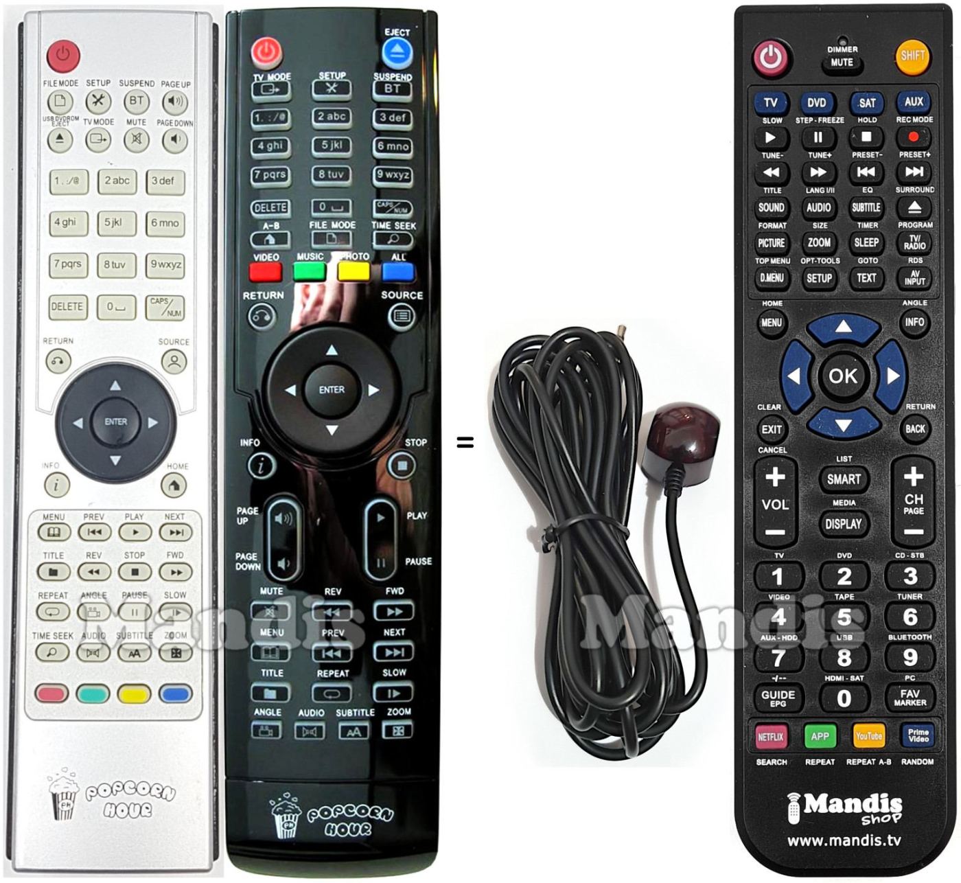 Below, we will show you the correspondence between each button on the original remote control and the button that performs the same function on the replacement remote control. In some cases, you may need to press the SHIFT key before pressing another button to perform certain actions. These additional functions are often not widely used and are included to facilitate understanding of the replacement remote control, or because the original remote control has more buttons than its equivalent.