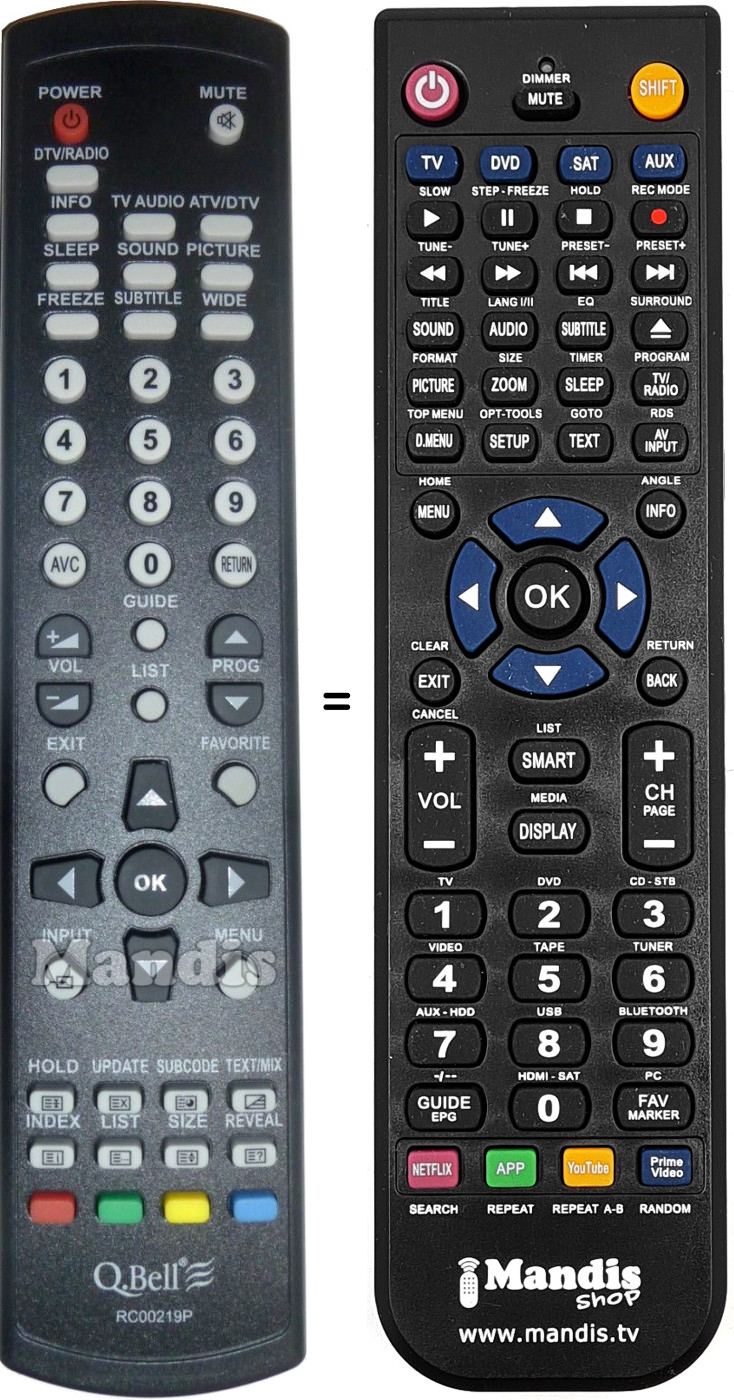 Remote control to replace the original and all its functions.