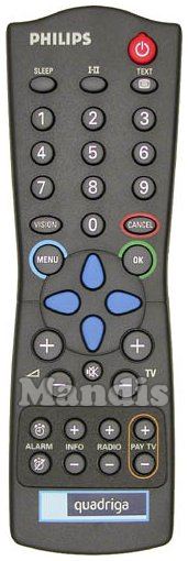 original remote control RC2884 00 used for televisions for the brand QUADRIGA. This is an original remote control.
