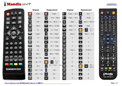This remote control fully replaces your SAGEM001 and offers all the functions of the original.