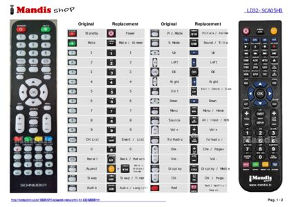 A document is included to help you use the new remote control easily, showing the button correspondence.