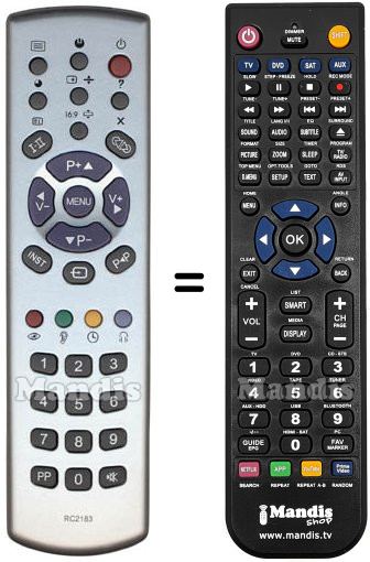 Below, we will show you the correspondence between each button on the original remote control and the button that performs the same function on the replacement remote control. In some cases, you may need to press the SHIFT key before pressing another button to perform certain actions. These additional functions are often not widely used and are included to facilitate understanding of the replacement remote control, or because the original remote control has more buttons than its equivalent.