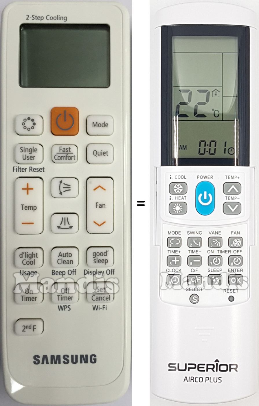 My LG air-conditioner's remote died and need replacement. AircoPlus did the job. I should point out that the code match did not correspond according to manufacturer's table. Let the auto-search code set up do the work. Also, excellent service by Mandis Remotes with a well-protected package.