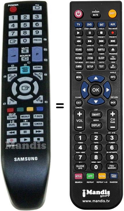 Remote control to replace the original BN59-00874A and all its functions. It is not a universal remote but a substitute for the original. You will receive the remote ready to use: you only need to install the batteries. It is not necessary to program it. We offer you our full guarantee that the remote will fulfil all the functions of the original.