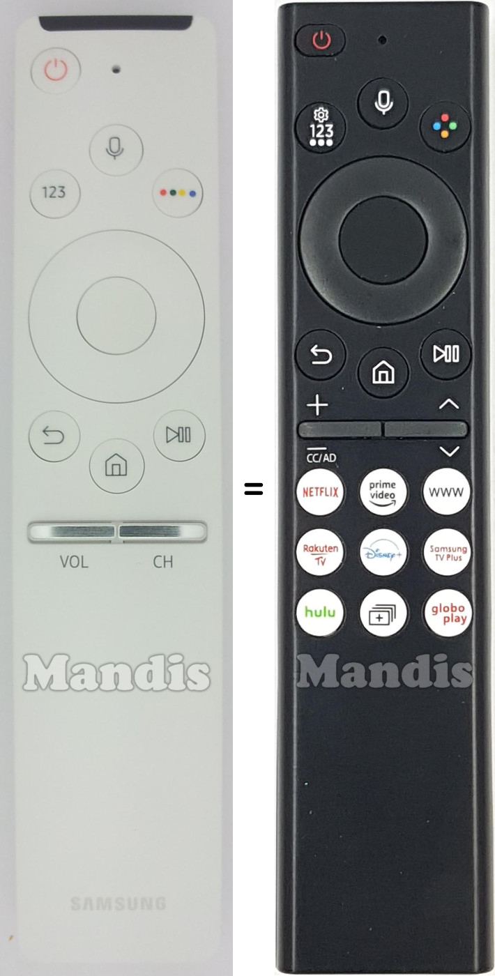 Modernize your Samsung Smart TV with this elegant and functional remote control. It offers complete control and comfort thanks to its voice technology and ergonomic design. It works perfectly with all Samsung TVs with Bluetooth, ensuring a reliable and powerful connection. Featuring direct access buttons for your favorite apps like Netflix and Prime Video.