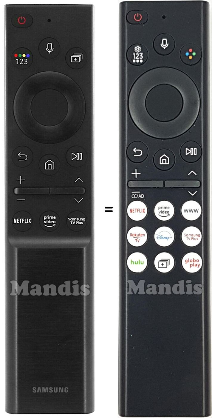 Modernize your Samsung Smart TV with this elegant and functional remote control. It offers complete control and comfort thanks to its voice technology and ergonomic design. It works perfectly with all Samsung TVs with Bluetooth, ensuring a reliable and powerful connection. Featuring direct access buttons for your favorite apps like Netflix and Prime Video.