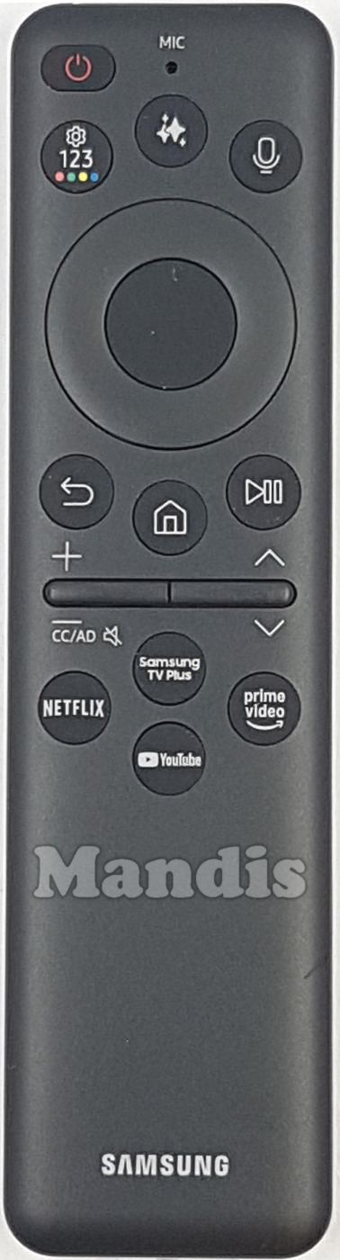 Power, 123/Colors, **, Micro, Up, OK, Down, Right, Left, Back, Home, Play/Pause, Netflix, Samsung TV Plus, prime video, YouTube, CH+, CH-, Vol+, Vol-, EPG, Mute
