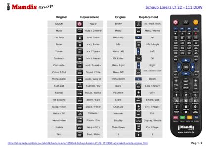 This remote control fully replaces your LT22-111DDW and offers all the functions of the original.
