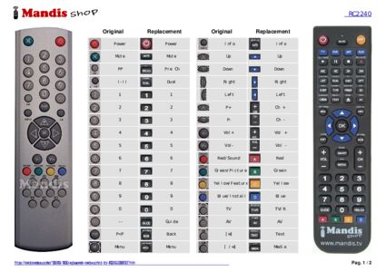 Below, we will show you the correspondence between each button on the original remote control and the button that performs the same function on the replacement remote control. In some cases, you may need to press the SHIFT key before pressing another button to perform certain actions. These additional functions are often not widely used and are included to facilitate understanding of the replacement remote control, or because the original remote control has more buttons than its equivalent.