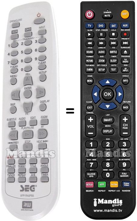 This remote control replaces most of the functions of your 97P1RA2FB3. It is not a universal remote control, but a copy with most of the buttons and functions of your original.