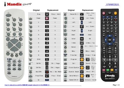 Below, we will show you the correspondence between each button on the original remote control and the button that performs the same function on the replacement remote control. In some cases, you may need to press the SHIFT key before pressing another button to perform certain actions. These additional functions are often not widely used and are included to facilitate understanding of the replacement remote control, or because the original remote control has more buttons than its equivalent.