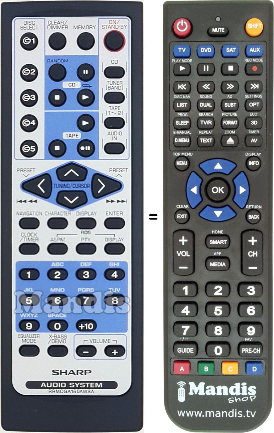 This remote control fully replaces your Audio System (RRMCGA160AWSA) and offers all the functions of the original.