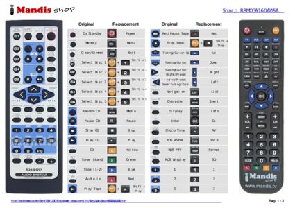 Below, we will show you the correspondence between each button on the original remote control and the button that performs the same function on the replacement remote control. In some cases, you may need to press the SHIFT key before pressing another button to perform certain actions. These additional functions are often not widely used and are included to facilitate understanding of the replacement remote control, or because the original remote control has more buttons than its equivalent.