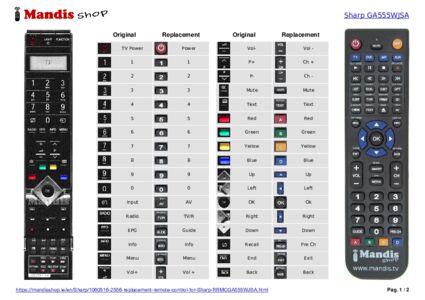 Attention: This remote control replaces most of the functions of your RRMCGA555WJSA, but not all. The main functions are included, but some secondary functions may not be available.