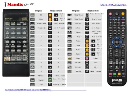 Below, we will show you the correspondence between each button on the original remote control and the button that performs the same function on the replacement remote control. In some cases, you may need to press the SHIFT key before pressing another button to perform certain actions. These additional functions are often not widely used and are included to facilitate understanding of the replacement remote control, or because the original remote control has more buttons than its equivalent.