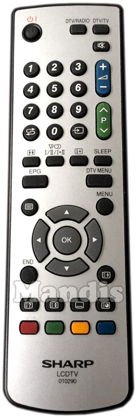 original remote control 010290 used for televisions for the brand Sharp. This is an original remote control.