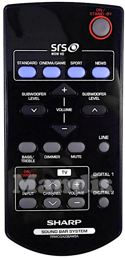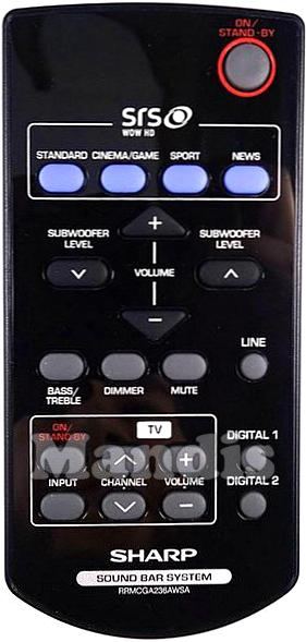original remote control RRMCGA236AWSA used for soundbar for the brand Sharp. This is an original remote control.