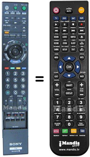 Below, we will show you the correspondence between each button on the original remote control and the button that performs the same function on the replacement remote control. In some cases, you may need to press the SHIFT key before pressing another button to perform certain actions. These additional functions are often not widely used and are included to facilitate understanding of the replacement remote control, or because the original remote control has more buttons than its equivalent.