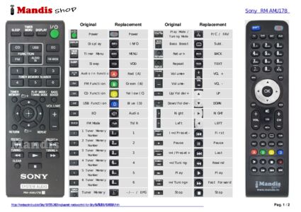 replacement remote control RM-AMU178 used for hi-fi system for the brand Sony.