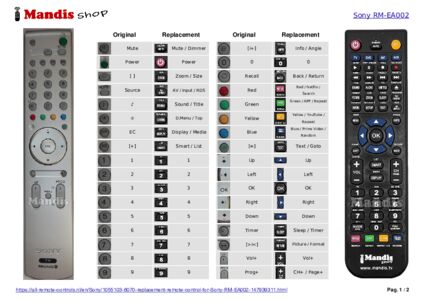 This remote control fully replaces your RM-EA002 (147939311) and offers all the functions of the original.