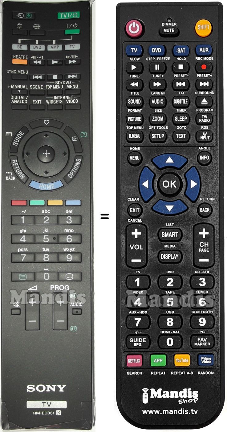 This remote control fully replaces your RM-ED 031 (148771511) and offers all the functions of the original.