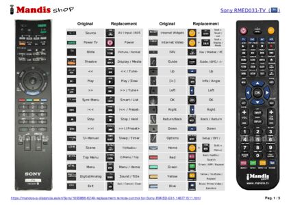 Below, we will show you the correspondence between each button on the original remote control and the button that performs the same function on the replacement remote control. In some cases, you may need to press the SHIFT key before pressing another button to perform certain actions. These additional functions are often not widely used and are included to facilitate understanding of the replacement remote control, or because the original remote control has more buttons than its equivalent.