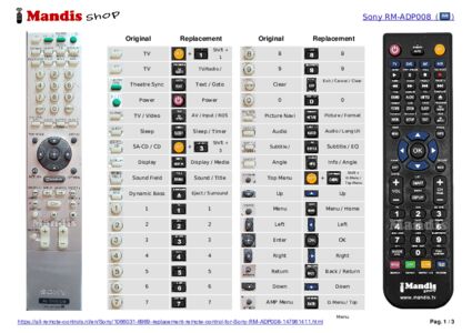 This remote control replaces most of the functions of your RM-ADP008 (147961411). It is not a universal remote control, but a copy with most of the buttons and functions of your original.