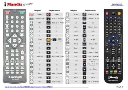 This remote control fully replaces your DVPMH225 and offers all the functions of the original.