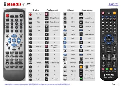Below, we will show you the correspondence between each button on the original remote control and the button that performs the same function on the replacement remote control. In some cases, you may need to press the SHIFT key before pressing another button to perform certain actions. These additional functions are often not widely used and are included to facilitate understanding of the replacement remote control, or because the original remote control has more buttons than its equivalent.