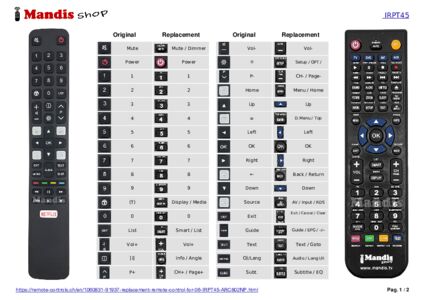 Below, we will show you the correspondence between each button on the original remote control and the button that performs the same function on the replacement remote control. In some cases, you may need to press the SHIFT key before pressing another button to perform certain actions. These additional functions are often not widely used and are included to facilitate understanding of the replacement remote control, or because the original remote control has more buttons than its equivalent.