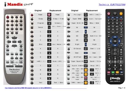 Below, we will show you the correspondence between each button on the original remote control and the button that performs the same function on the replacement remote control. In some cases, you may need to press the SHIFT key before pressing another button to perform certain actions. These additional functions are often not widely used and are included to facilitate understanding of the replacement remote control, or because the original remote control has more buttons than its equivalent.