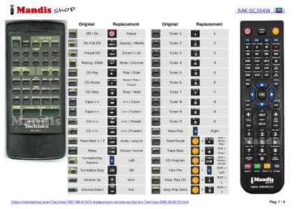 Home > Brands > Remote controls Technics > Remote control for TECHNICS RAK-SC301X