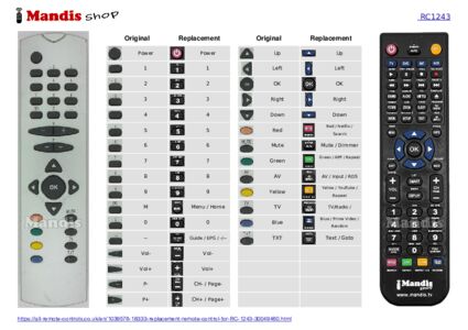 This remote control fully replaces your RC 1243 (30049460) and offers all the functions of the original.