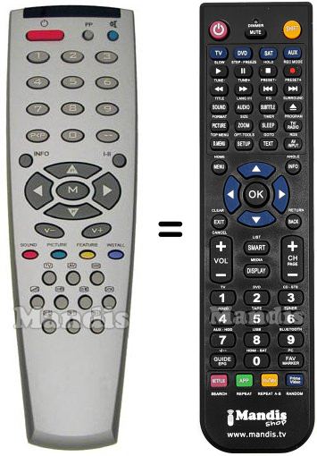 Below, we will show you the correspondence between each button on the original remote control and the button that performs the same function on the replacement remote control. In some cases, you may need to press the SHIFT key before pressing another button to perform certain actions. These additional functions are often not widely used and are included to facilitate understanding of the replacement remote control, or because the original remote control has more buttons than its equivalent.