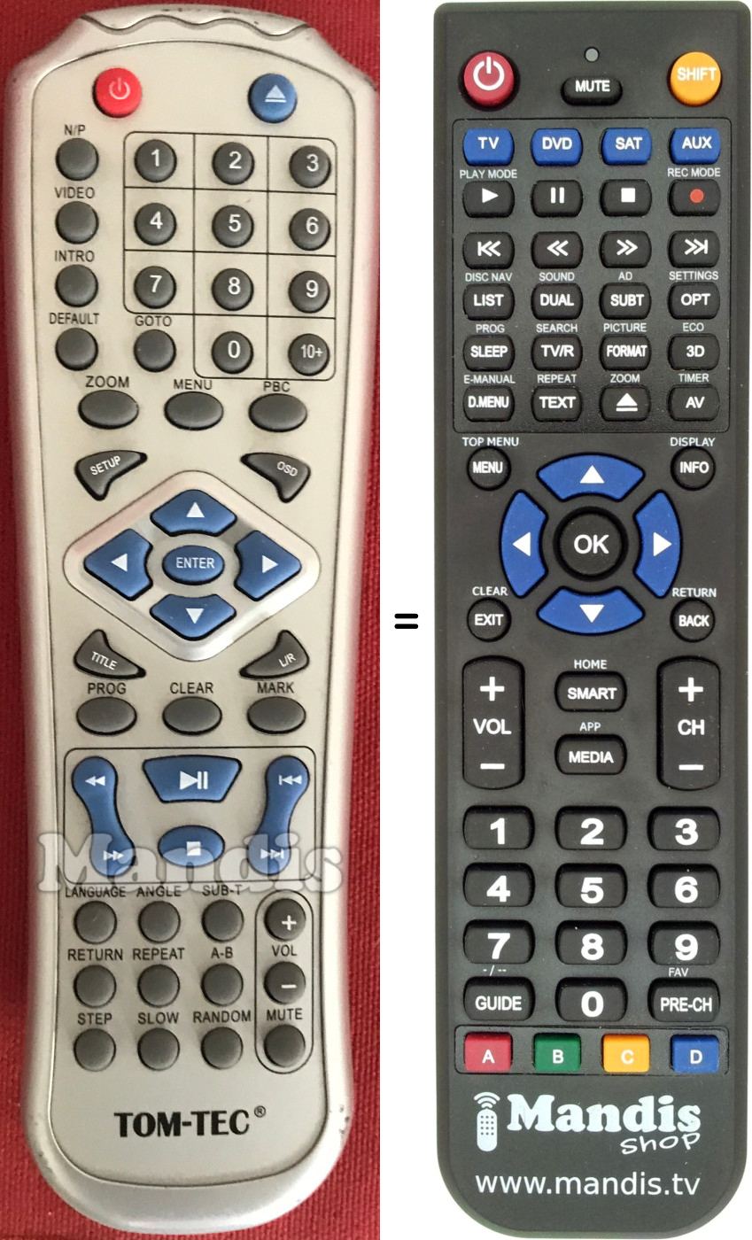 Home > Brands > Remote controls Tom-Tec > Remote control for TOM-TEC DVD3602