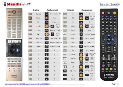 A document is included to help you use the new remote control easily, showing the button correspondence.