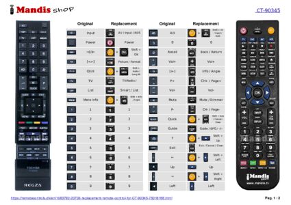 This remote control fully replaces your CT-90345 (REMCON1231) and offers all the functions of the original.