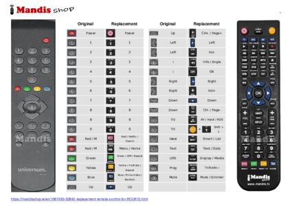 This remote control fully replaces your RCU610 and offers all the functions of the original.