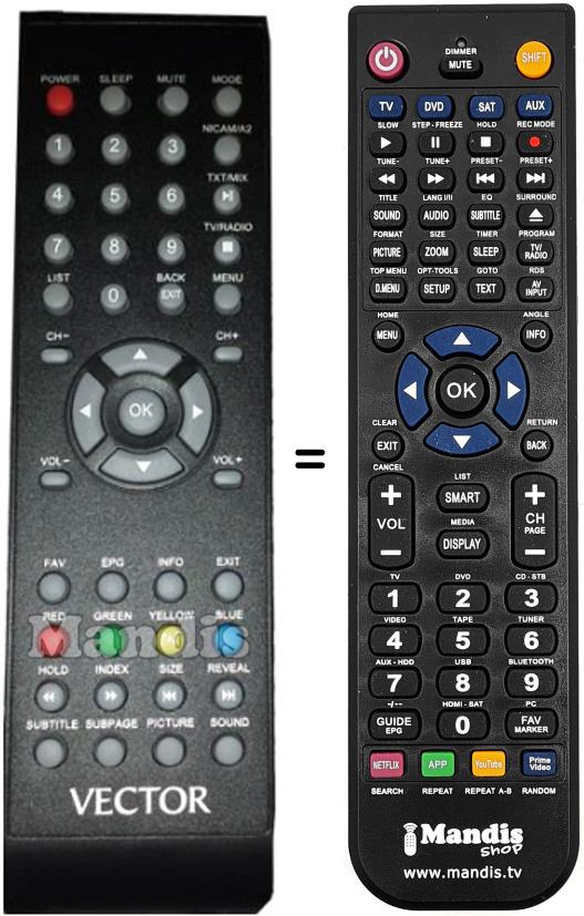 Remote control to replace the original and all its functions.