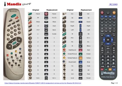 Below, we will show you the correspondence between each button on the original remote control and the button that performs the same function on the replacement remote control. In some cases, you may need to press the SHIFT key before pressing another button to perform certain actions. These additional functions are often not widely used and are included to facilitate understanding of the replacement remote control, or because the original remote control has more buttons than its equivalent.