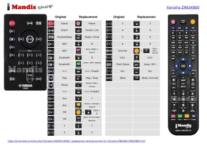 Below, we will show you the correspondence between each button on the original remote control and the button that performs the same function on the replacement remote control. In some cases, you may need to press the SHIFT key before pressing another button to perform certain actions. These additional functions are often not widely used and are included to facilitate understanding of the replacement remote control, or because the original remote control has more buttons than its equivalent.