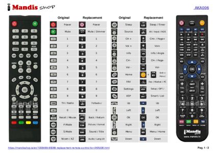 A document is included to help you use the new remote control easily, showing the button correspondence.