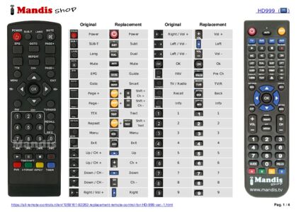 1. Look at the images of the two remote controls: the original (left) and the replacement (right).