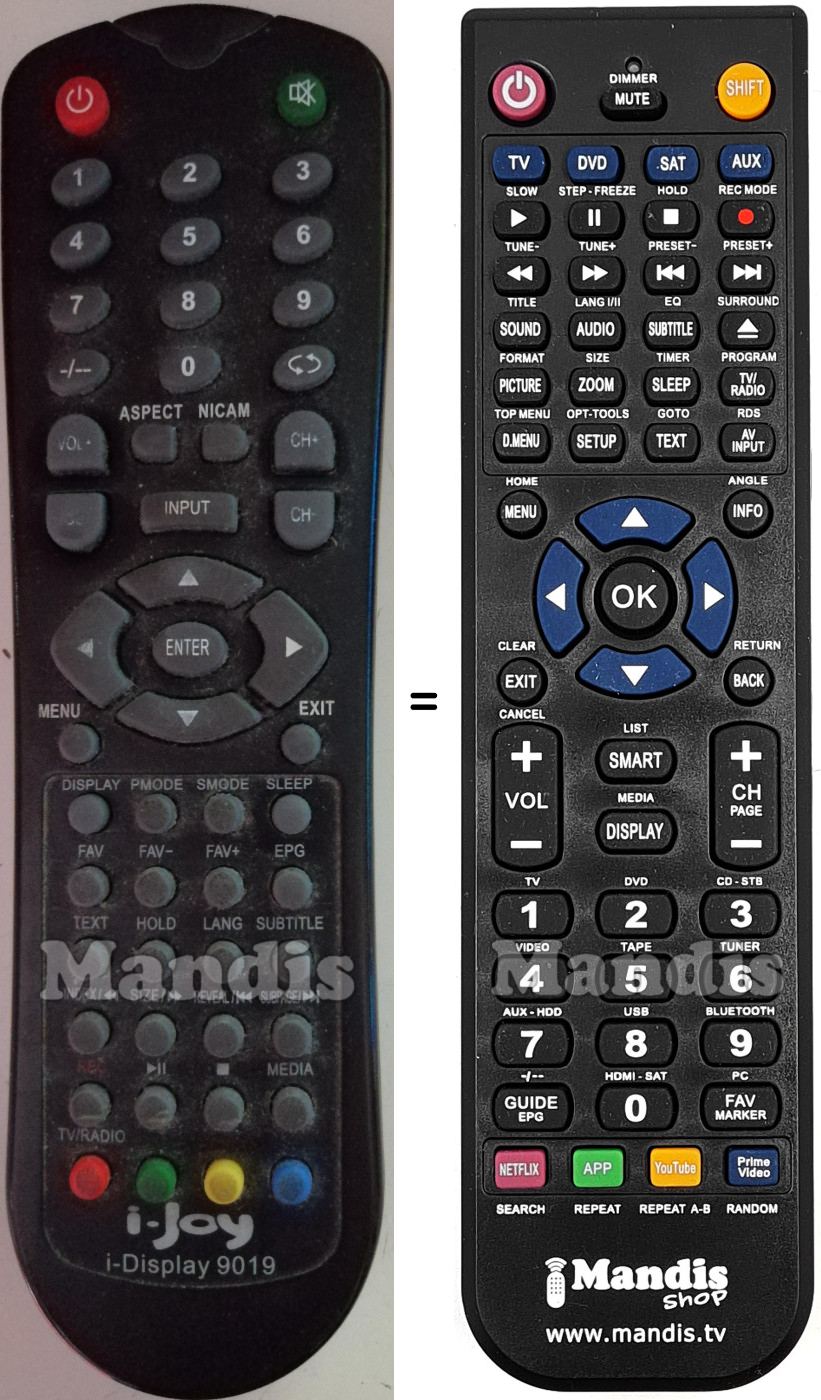 This remote control fully replaces your I-DISPLAY9019 and offers all the functions of the original.