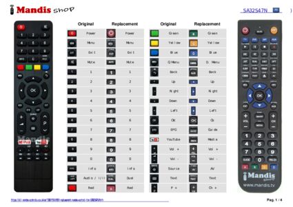A document is included to help you use the new remote control easily, showing the button correspondence.